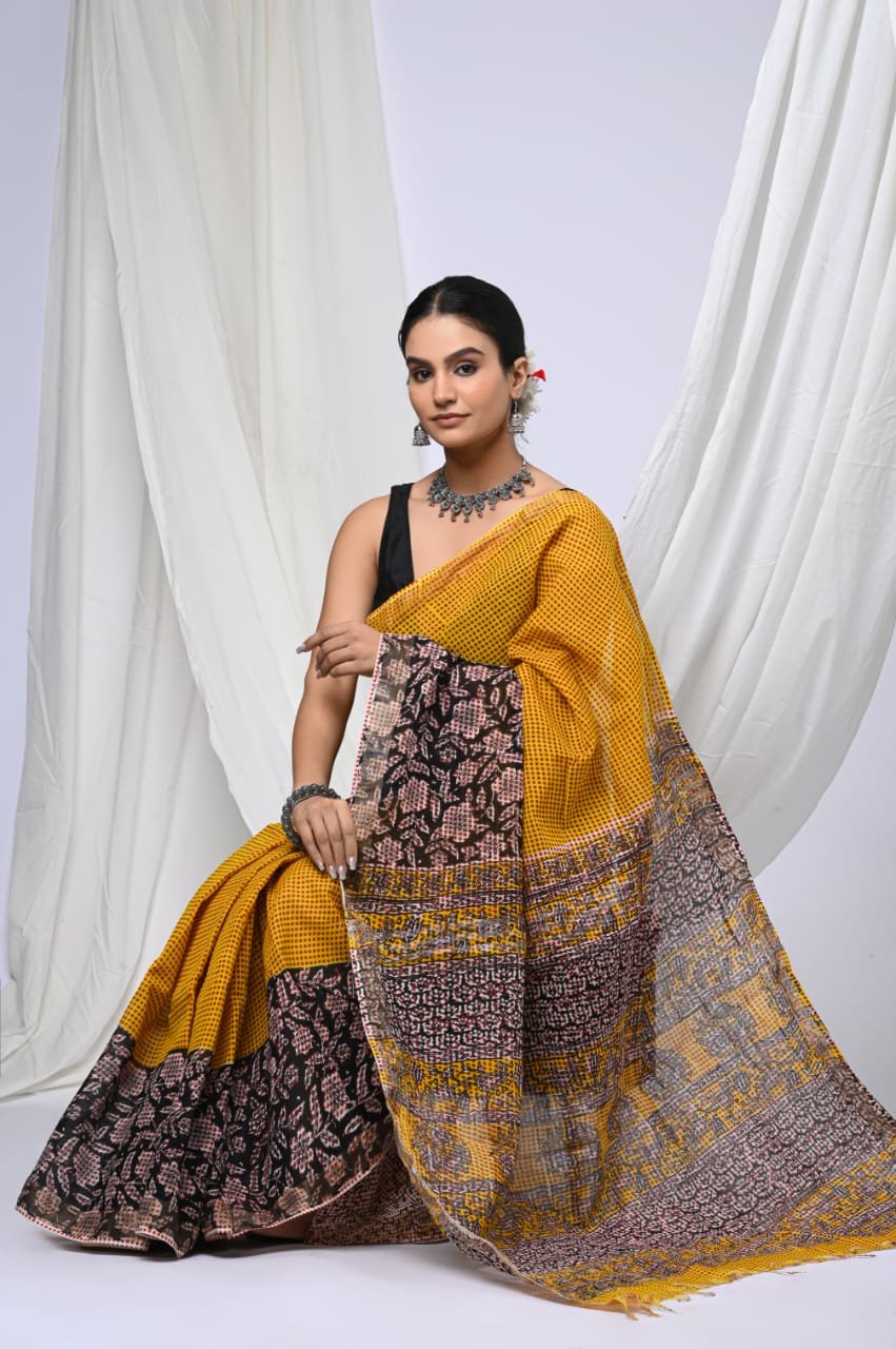 Experience the charm of traditional craftsmanship with our elegant hand block printed linen sarees, designed for women who love timeless style with a modern touch.