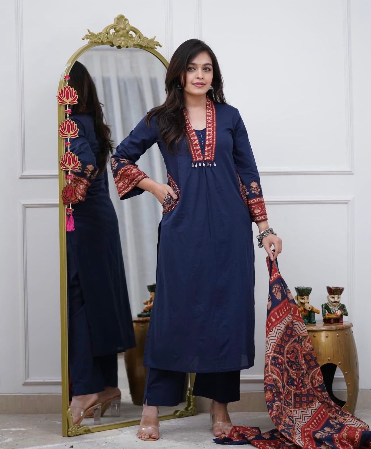 *Step into elegance with our most comfortable & beautiful Cotton Kurti with Pant and mal mal dupatta Set* đ